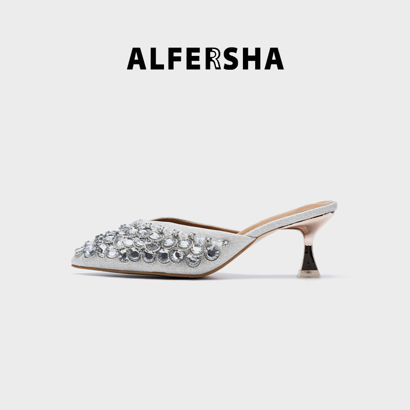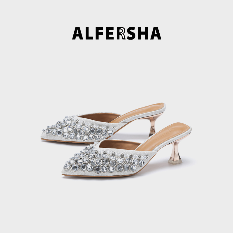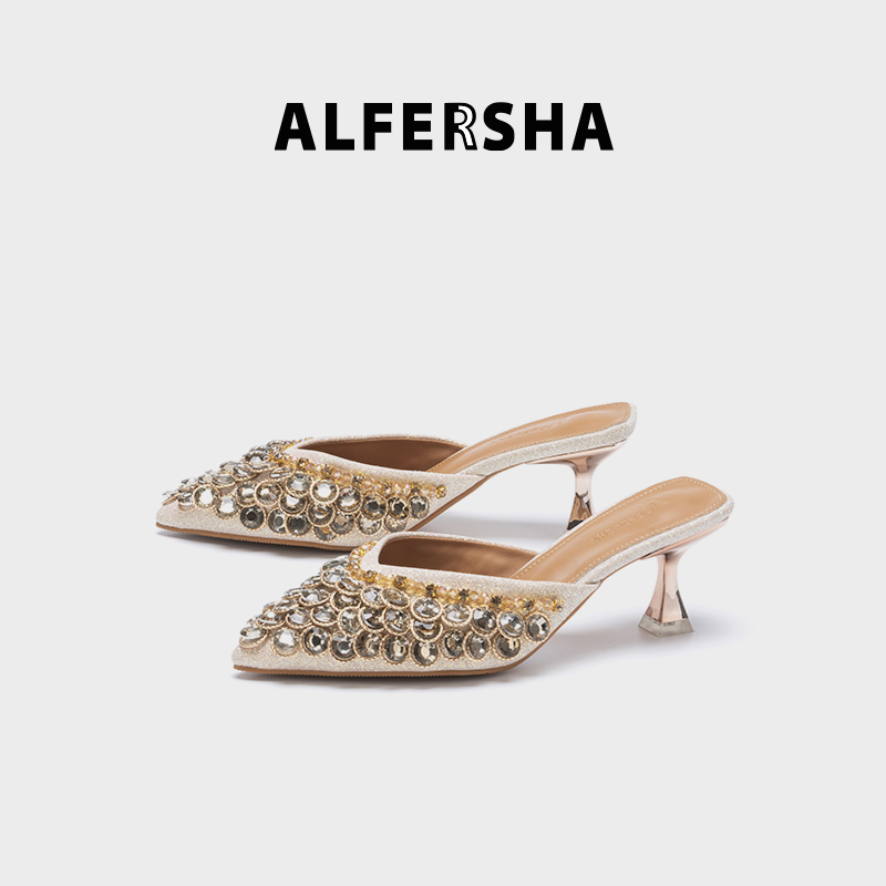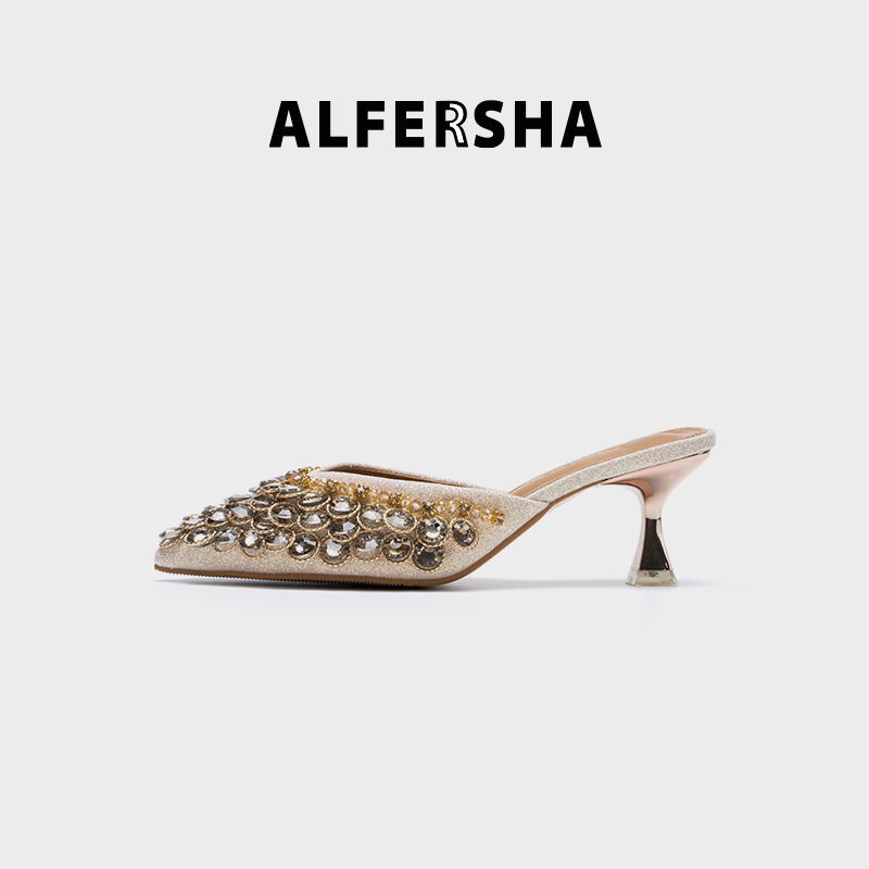 ALFERSHA/阿芙莎阿芙莎手工鞋1137夏季新款迷你细跟亮晶晶包头拖