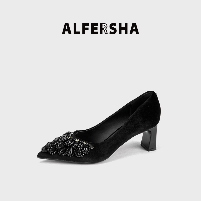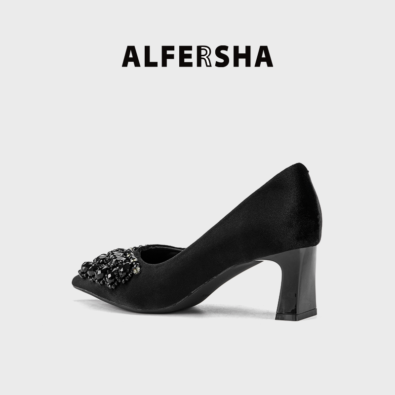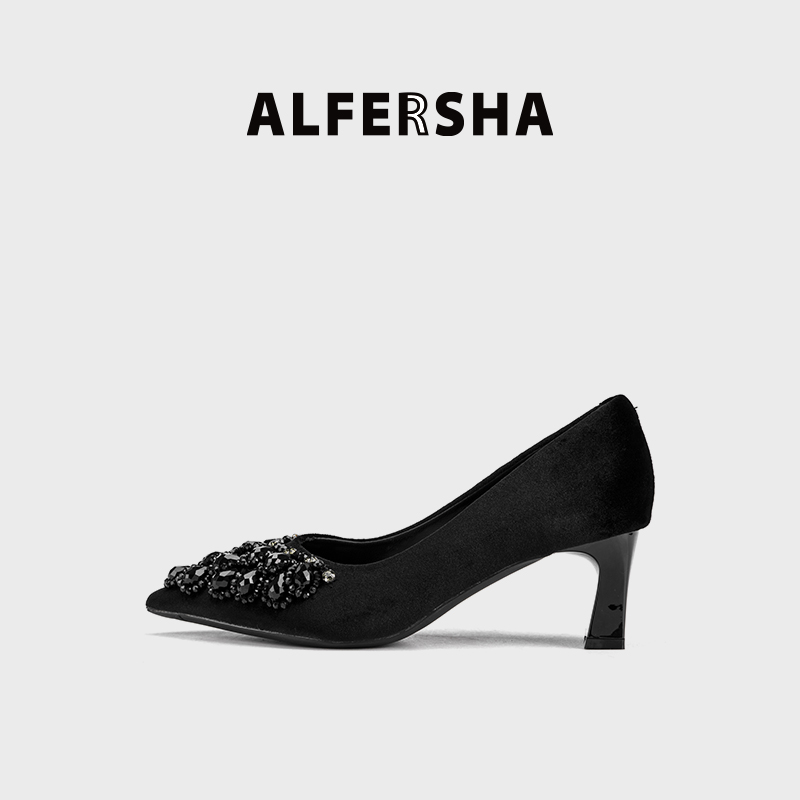 ALFERSHA/阿芙莎手工鞋6881新款黑曜石高跟单鞋