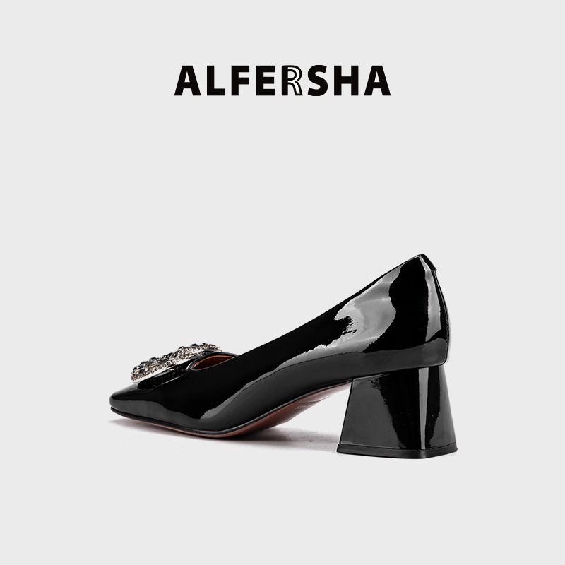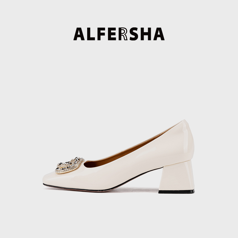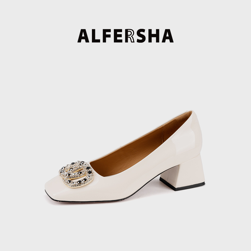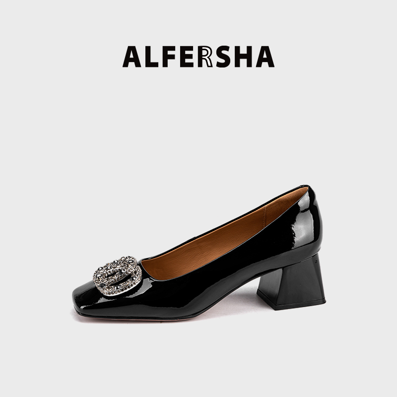 ALFERSHA/阿芙莎2619565新款法式时尚百搭粗跟方头单鞋