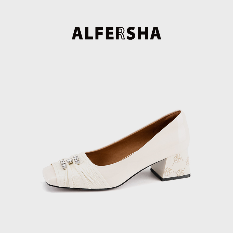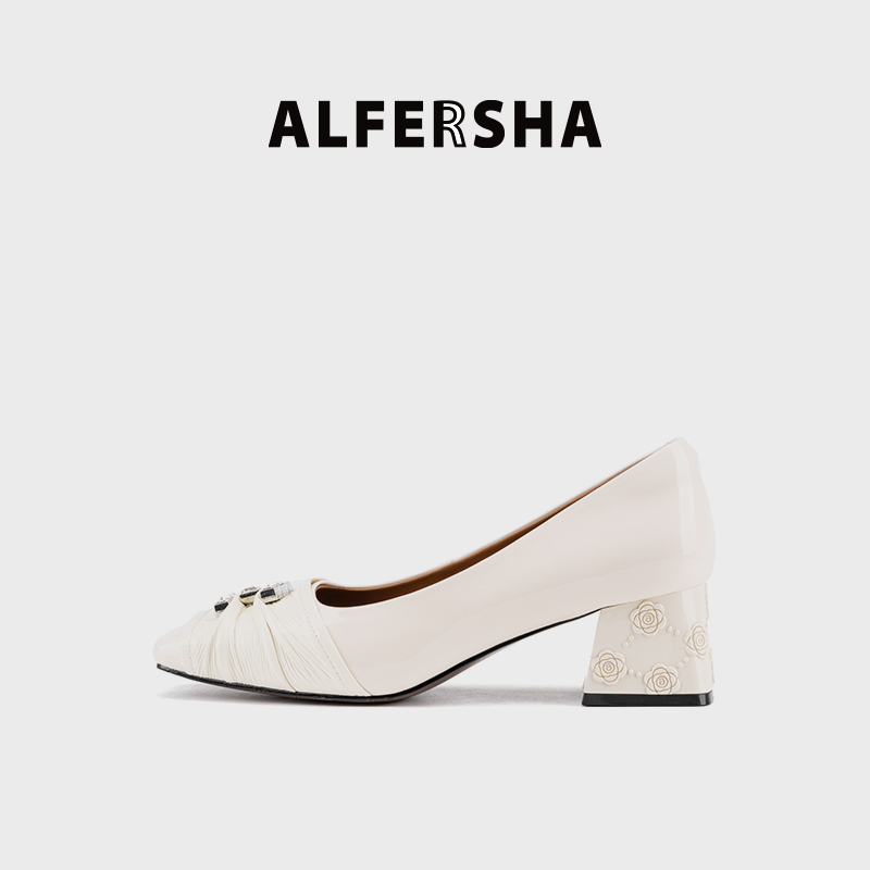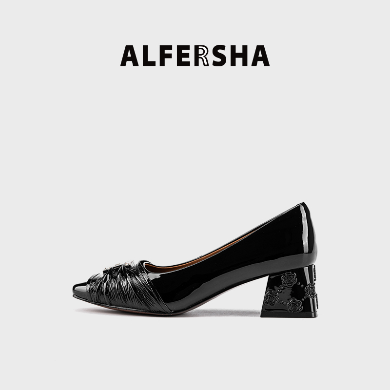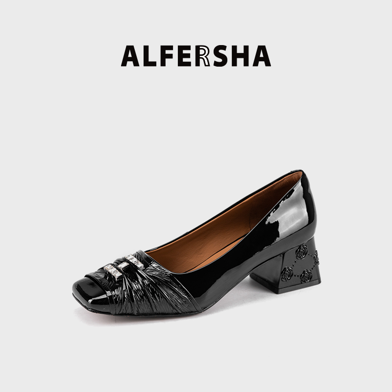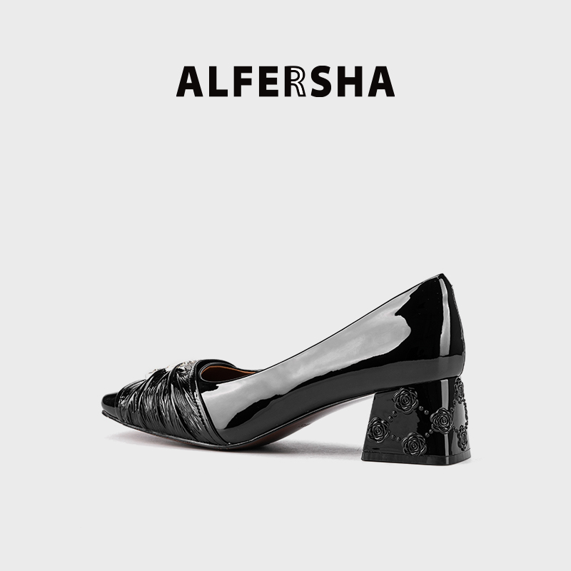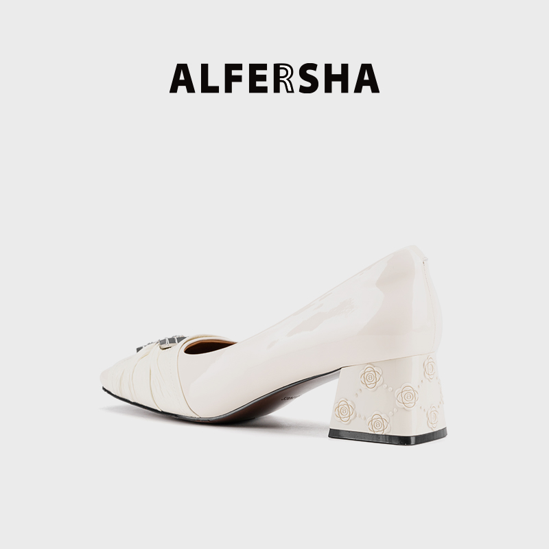 ALFERSHA/阿芙莎9688862新款气质百搭舒适法式粗跟单鞋