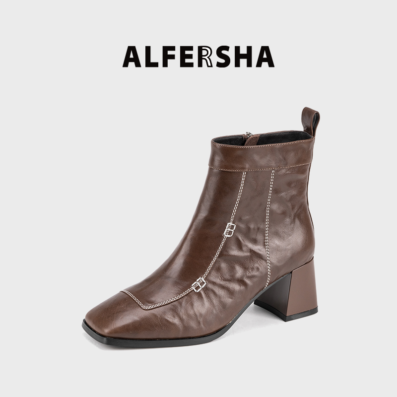 ALFERSHA/阿芙莎889912气质时尚百搭真皮女靴