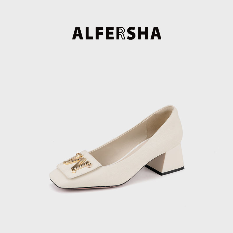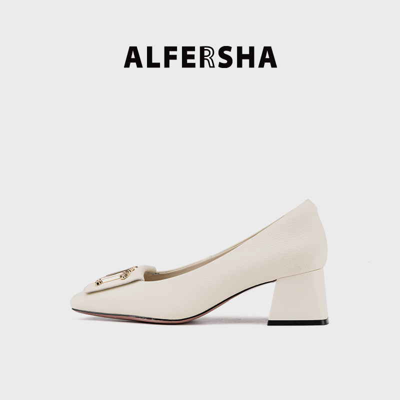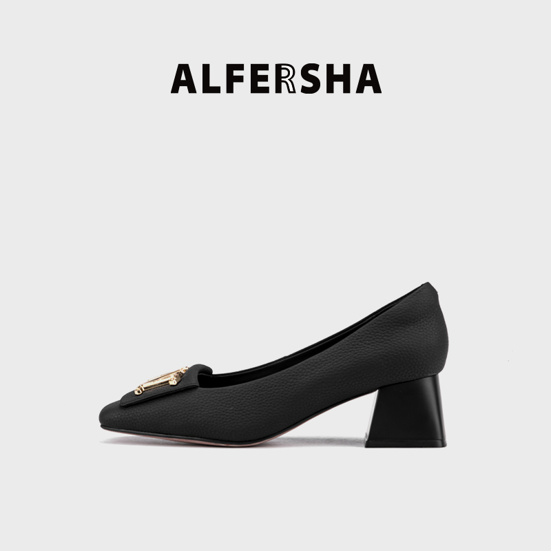ALFERSHA/阿芙莎2619325舒适时尚真皮粗跟通勤方头复古单鞋