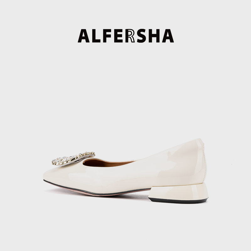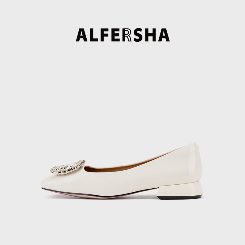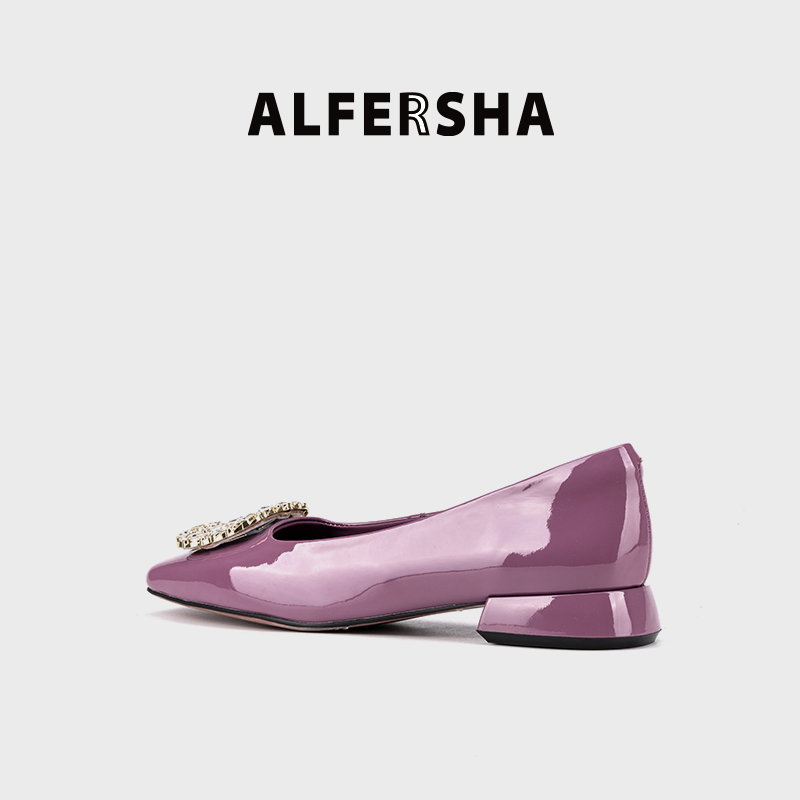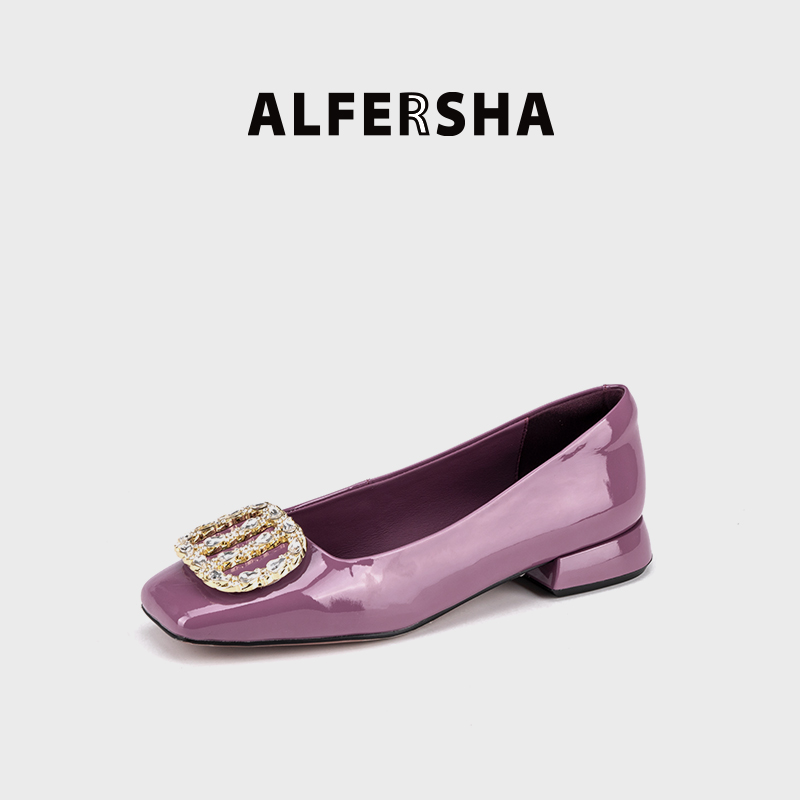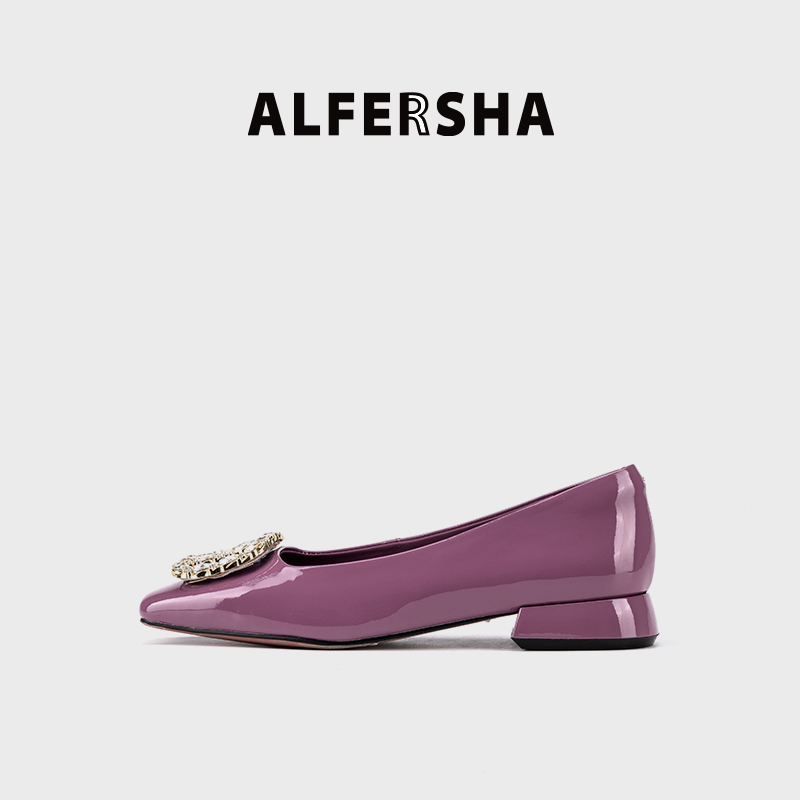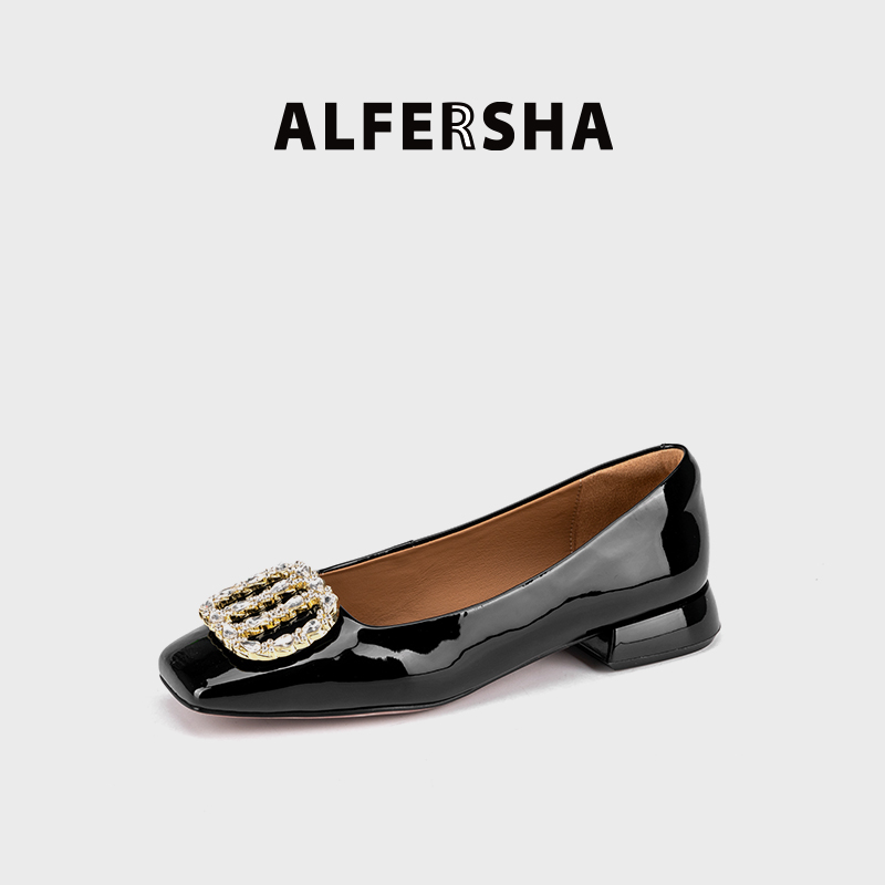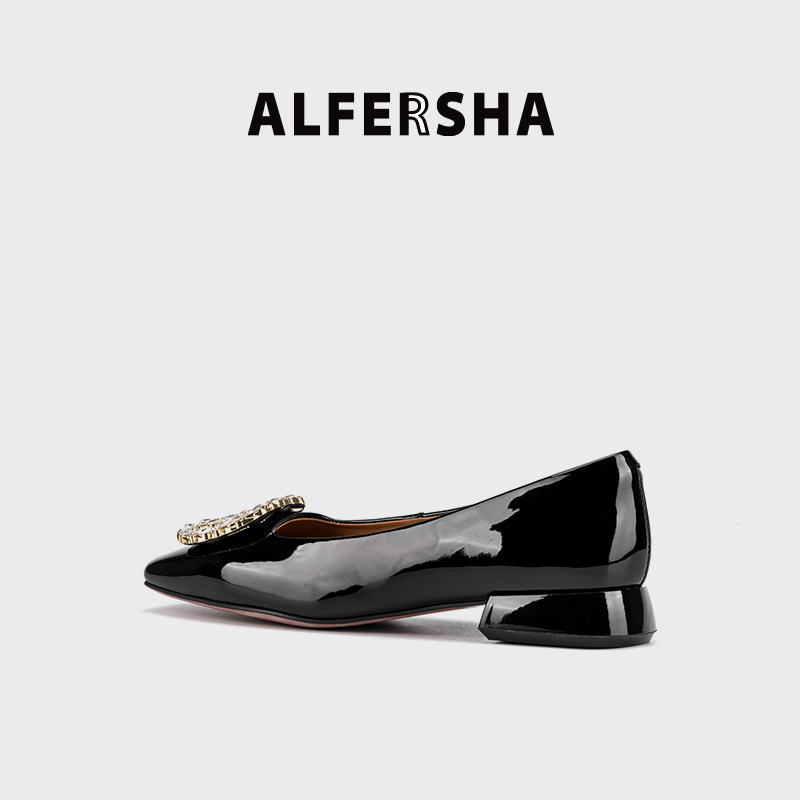 ALFERSHA/阿芙莎2619326新款气质百搭粗通勤跟水晶扣时尚单鞋