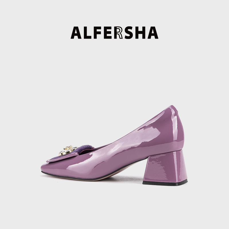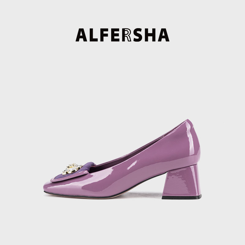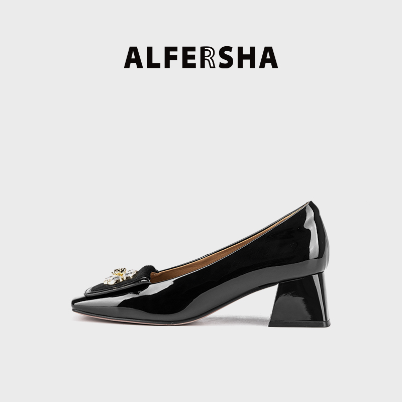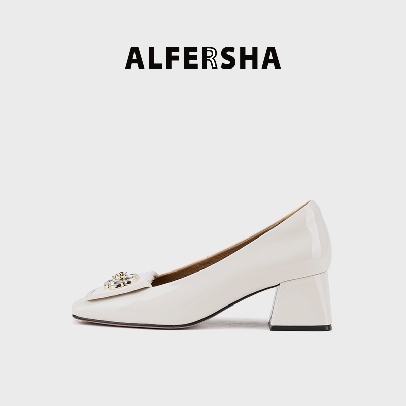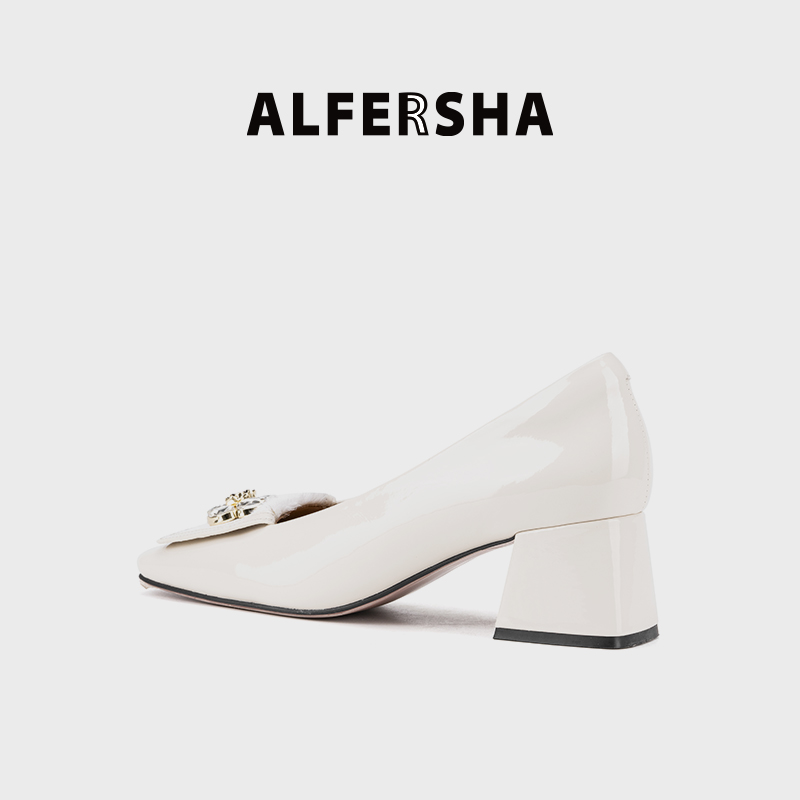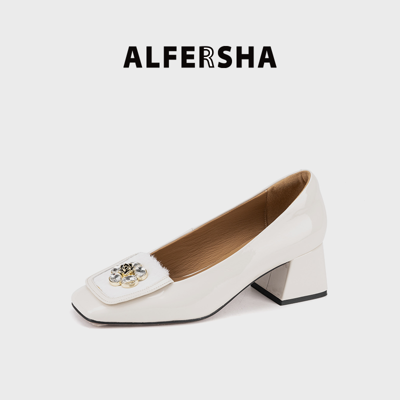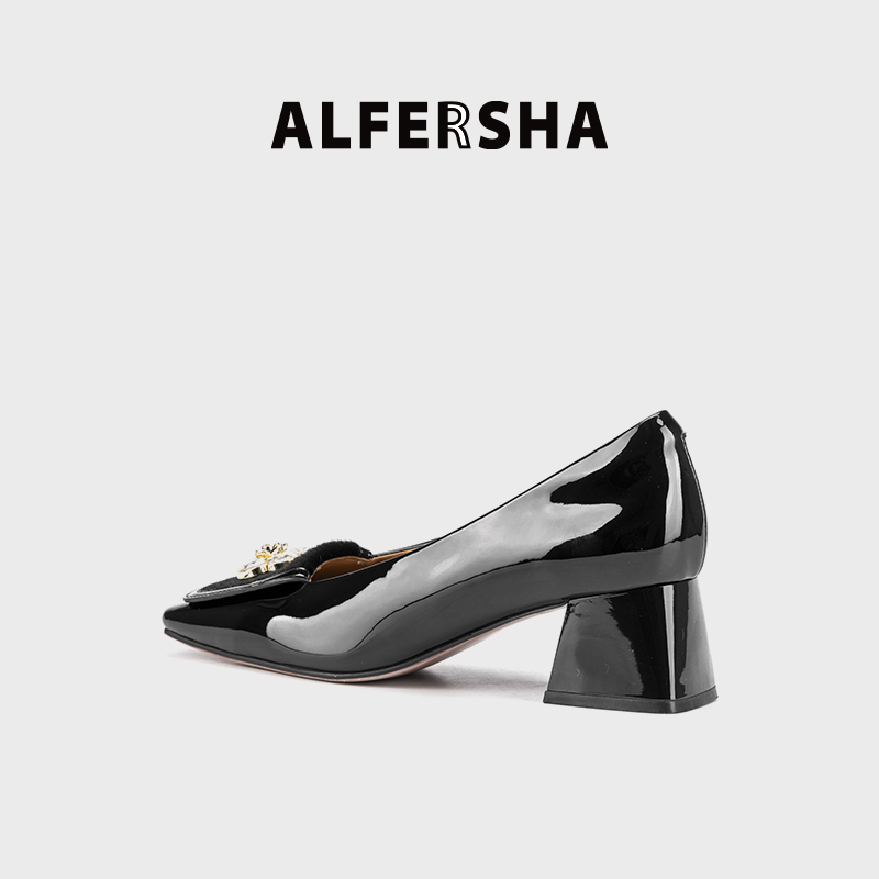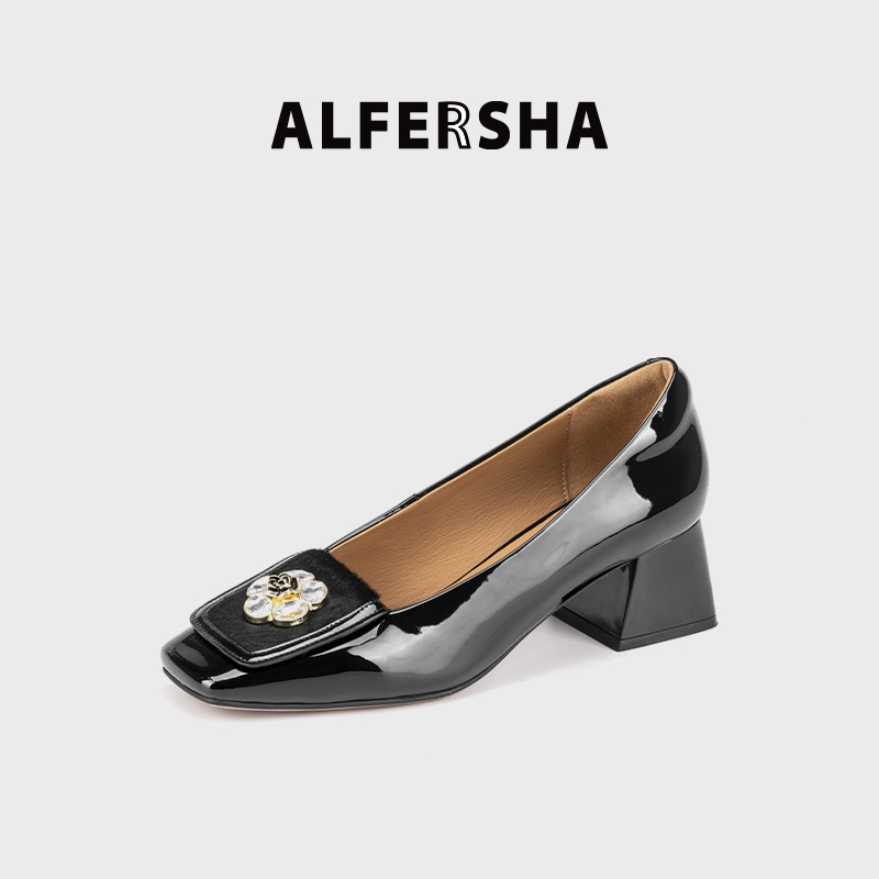 ALFERSHA/阿芙莎2619519新款法式气质方头粗跟高跟鞋