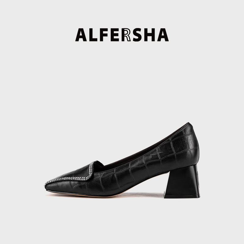 ALFERSHA/阿芙莎2619577新款时尚气质水钻方头单鞋