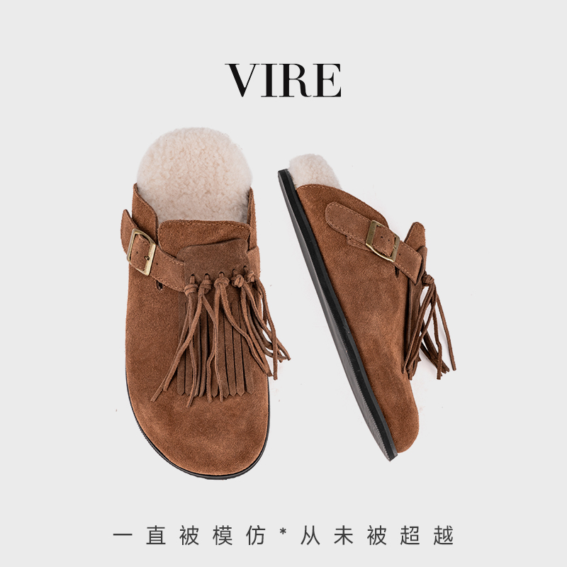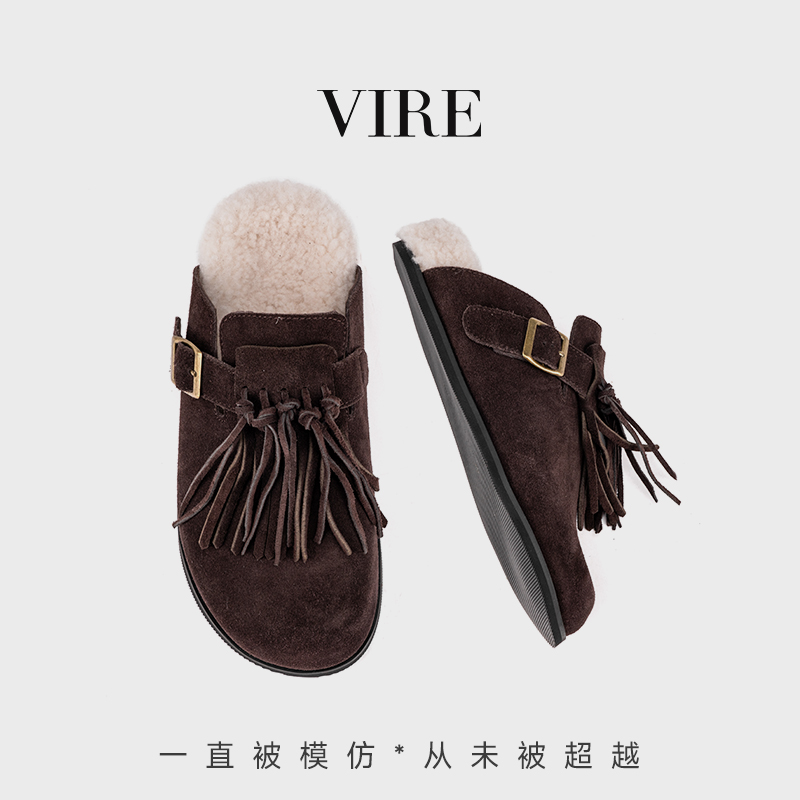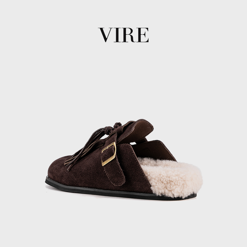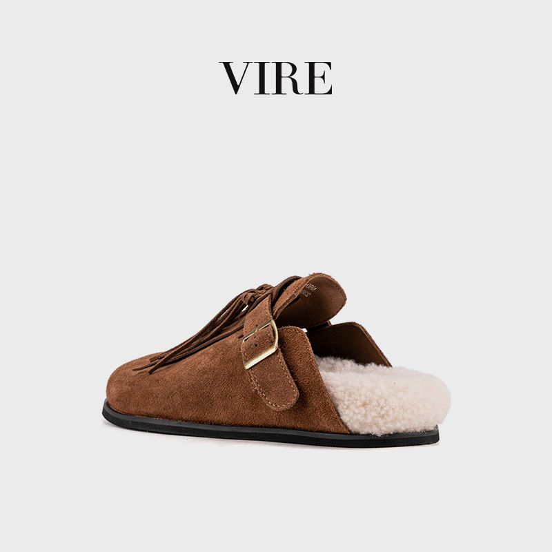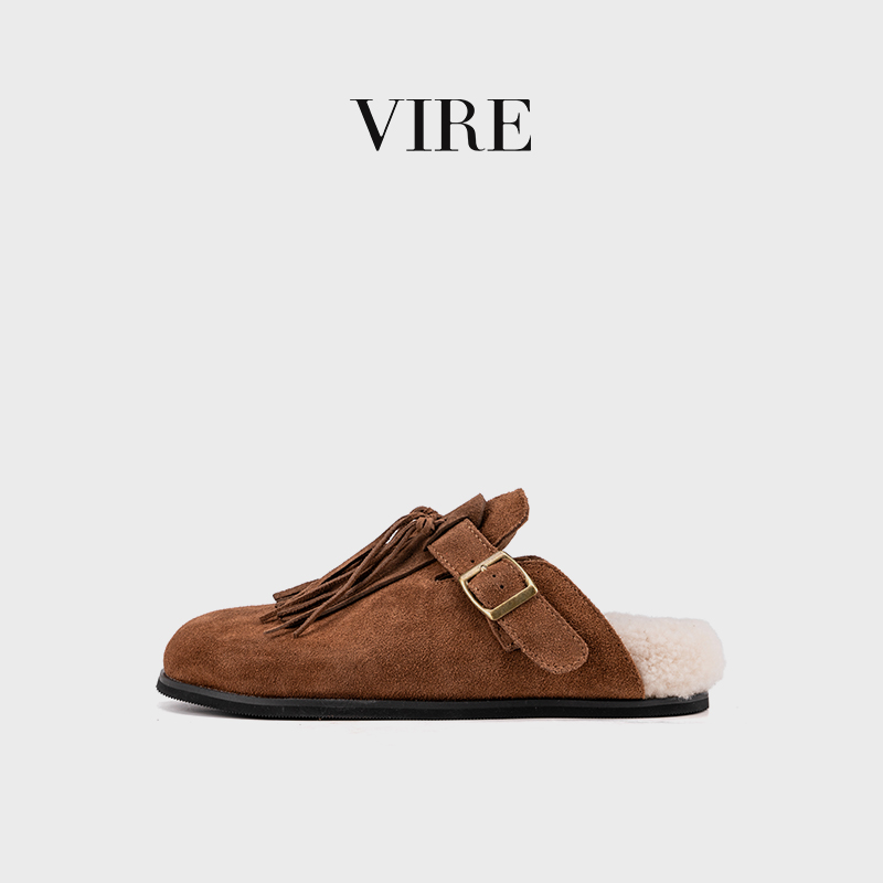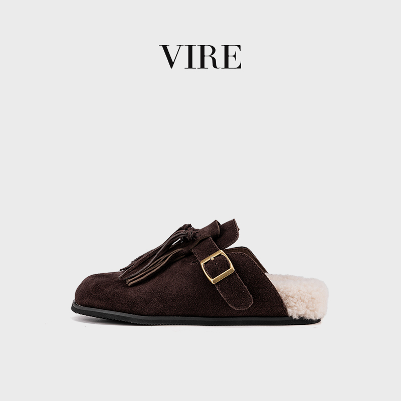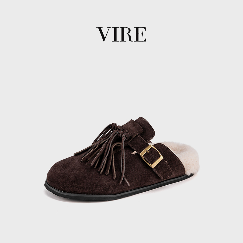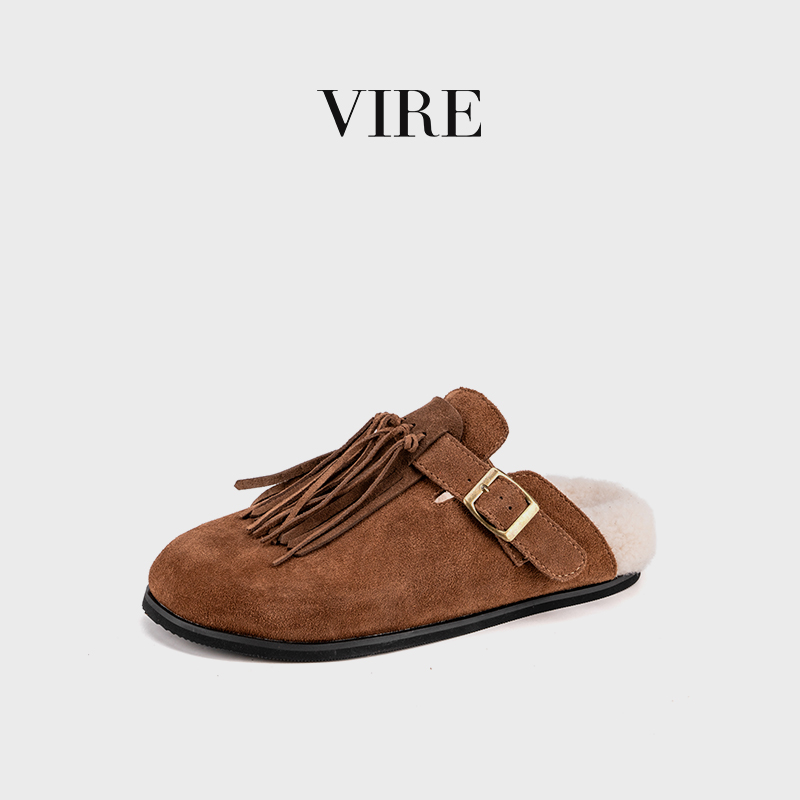 VIRE/N6099冬季新款钕法式时尚加厚保暖绒皮厚底拖鞋B