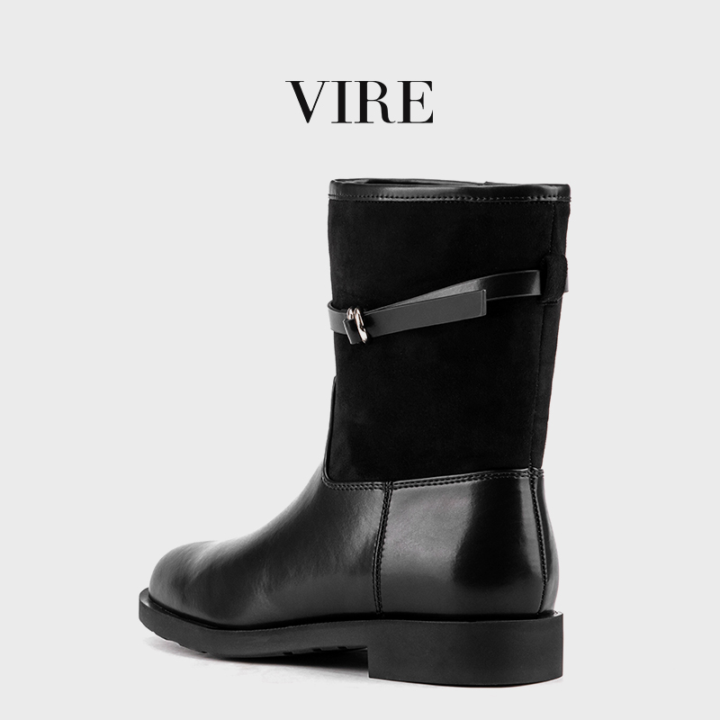 VIRE/RX099法式厚底时装冬套筒短靴中跟百搭英伦风秋冬筒靴B