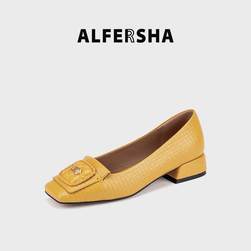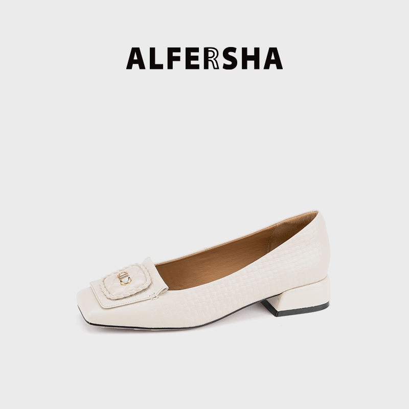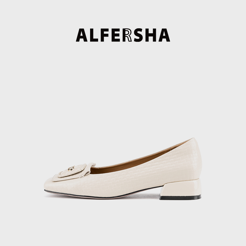 阿芙莎2619397气质舒适时尚百搭真皮方头女鞋